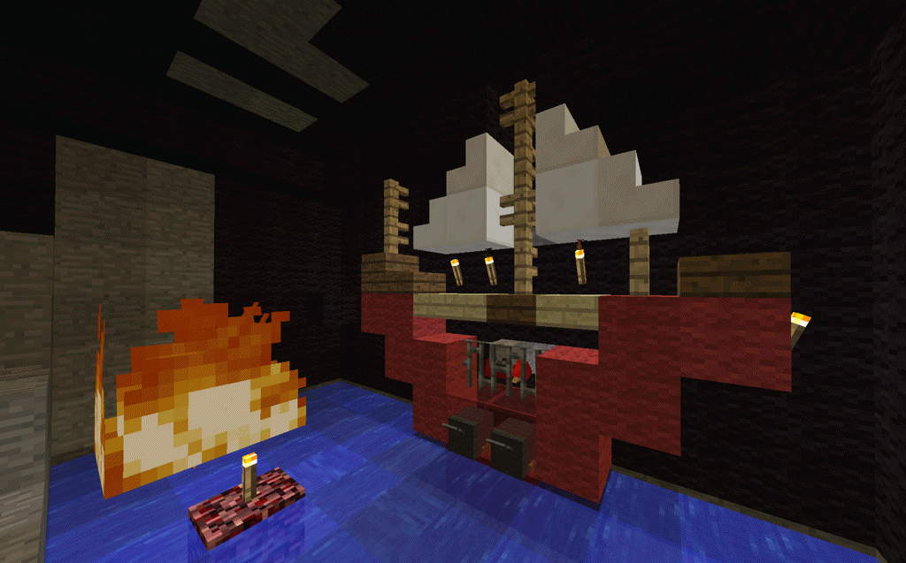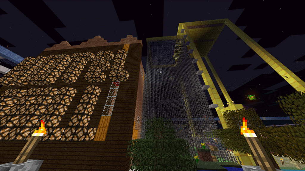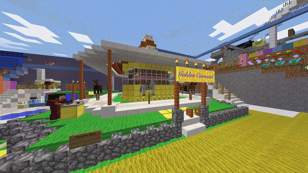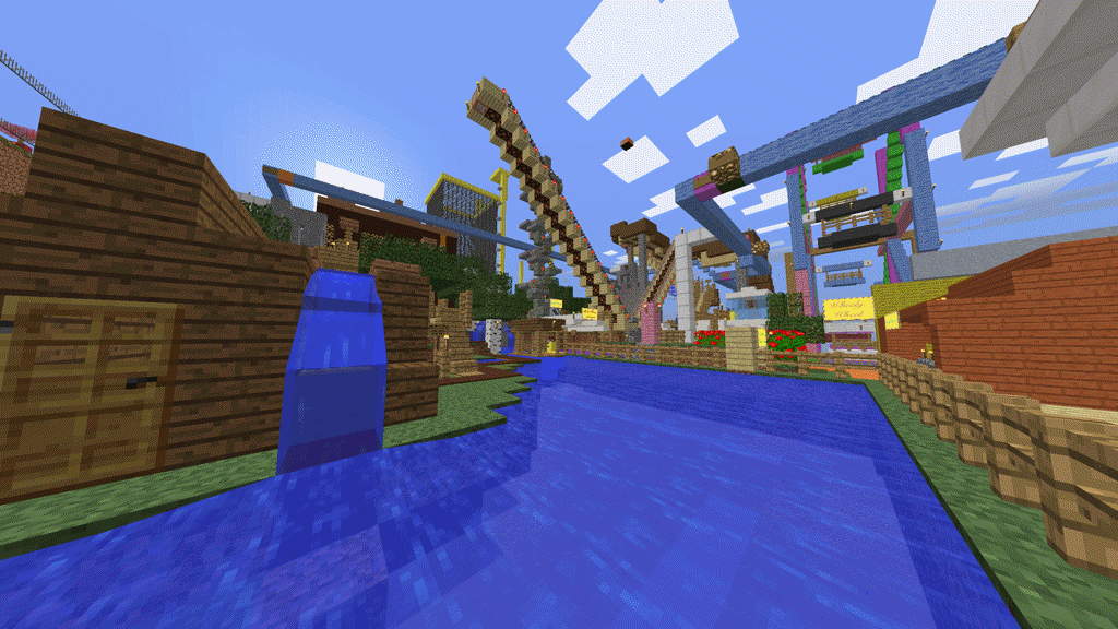Discovery River wheel house, with Swing Cart, Water Fall Slide, and Cart Drop behind