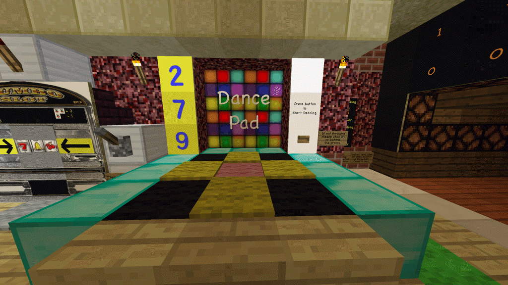 Dance Pad in the beach arcade, and on the sides are a slot machine and bowling alley